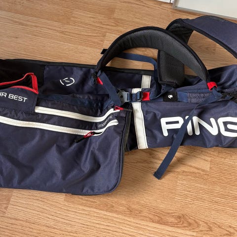 Lätt bärbag utan ben. Sparsamt använd och alla dragkedjor fungerar.