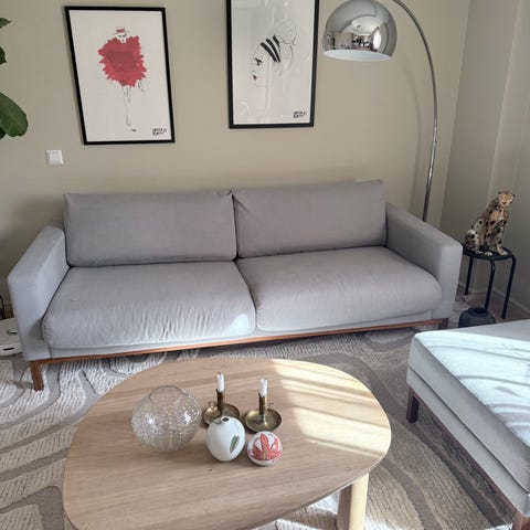 Säljer en 3-sits soffa från Sleepo jag köpte begagnad inför lägenhetsförsäljning i linneblandning.