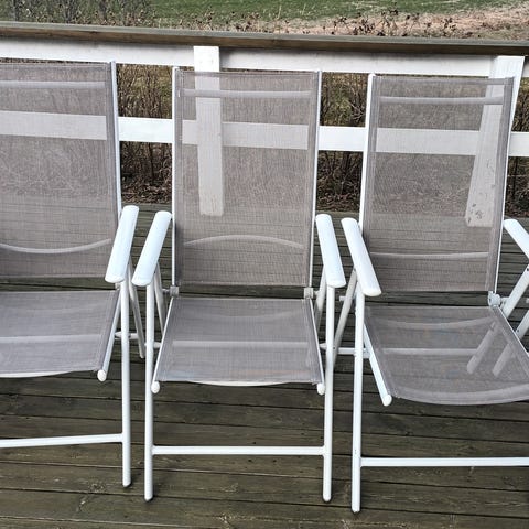 Hopfällbar trädgårdsstol med armstöd. Stolen har svart metallram och sits samt rygg i nätmaterial som släpper igenom vatten. Passar för användning utomhus i trädgård, på altan eller balkong.