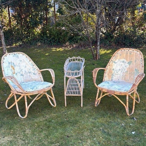 Rotting möbel, cafébord och fåtöljer
