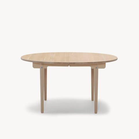 Bordsskivan är i faner av vitpigmenterad oljad ek och stommen i massiv ek, vilket ger både ett lätt visuellt intryck och stabil konstruktion.