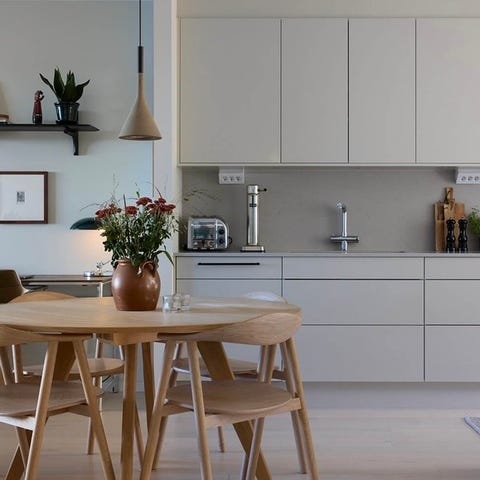 Ett tidlöst design bord med exklusiv känsla – perfekt för mindre matplatser eller kök där stil och funktion möts. Iläggs skivor kan köpas på Bolia.