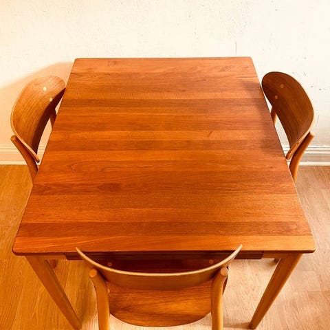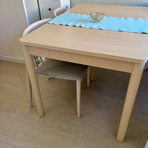 Matbord/köksbord med Perstorpsskiva. Kan fällas ut i ändarna, se bilder.
