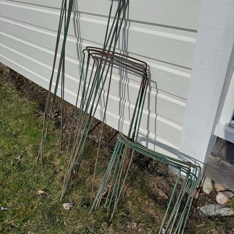 Ett knippe med jordspjut att hålla fast täckväv eller nät mot marken, bild 2