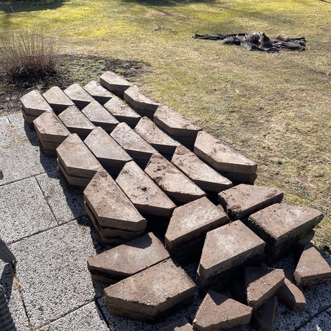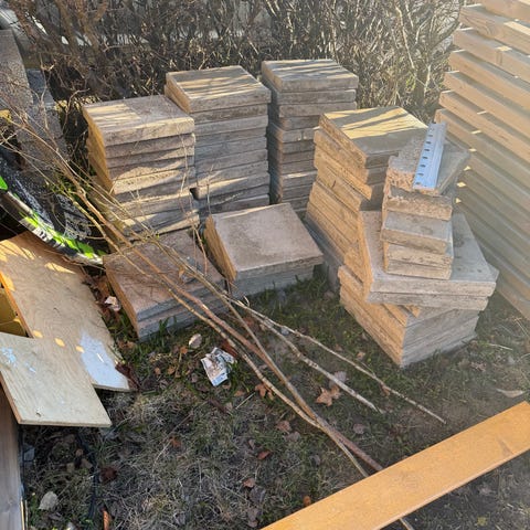 Betongsten och kantsten blandat parti grå och rödaktiga.
