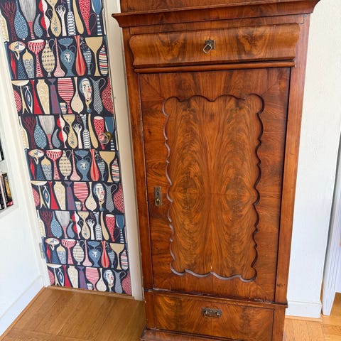 Hörnskåp för t.ex lantkök. För närvarande i bruksskick till förvaring för porslin mm.