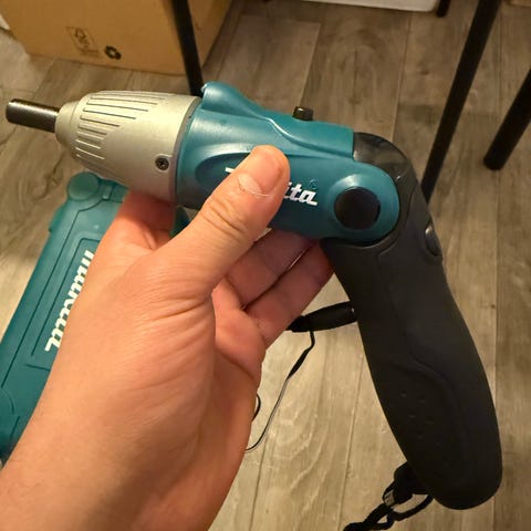 Makita skruvdragarsats i plastväska. Satsen innehåller en kompakt skruvdragare samt flera olika bits och tillbehör.