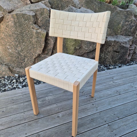 4st stolar i aluminium, rygg och sits är lindat i rep