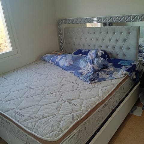 Komplett Sängpaket med förvaring LED-belysning 180x200 cmBeige med överkast och medrass .vi köpte från tradmax .priset 5000 kron