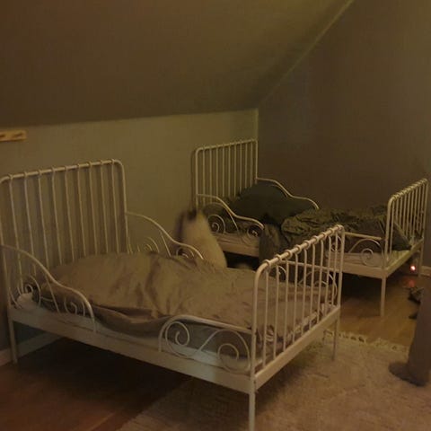 IKEA Minnen. Utdragbar sångstomme med ribbotten. Vit. 80x200. Inklusive madrass. Gröndal.