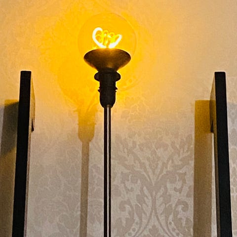 fönsterlampa med glasskärm i melerat glasbruk och vitt