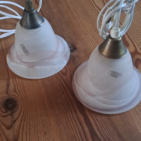 Nätt fönsterlampa i vitt glas med melering