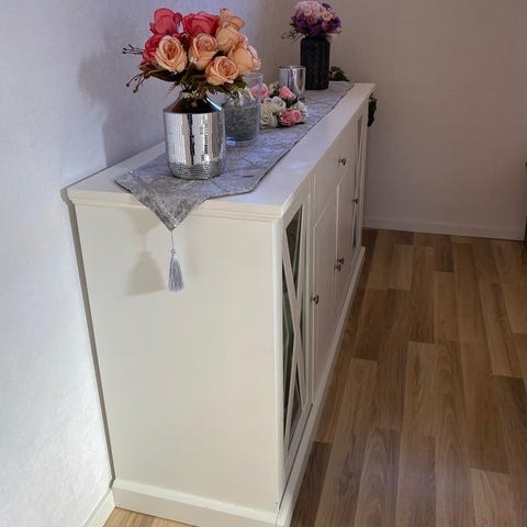 Säljer nu denna otroliga vita byrå/sideboard från usm haller. Skicket är som nytt förutom en liten buckla på 1 panel, se bild. Nypris ligger runt 44 000kr. Tidlös ikonisk design.