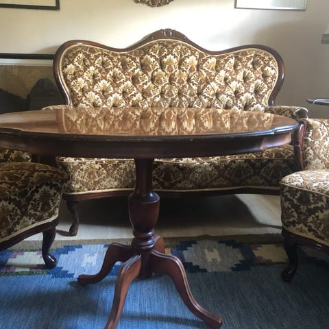 Grå rokokosoffa bortskänkes