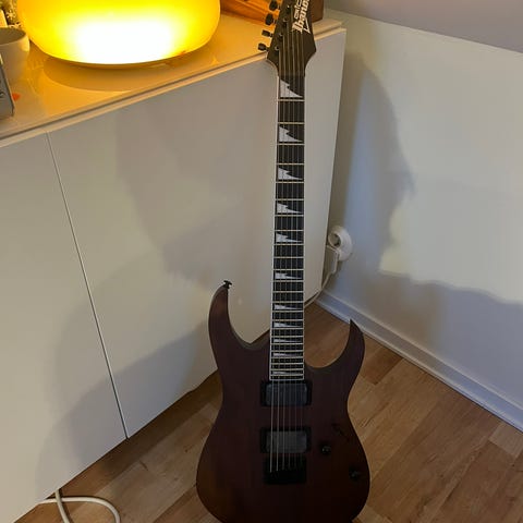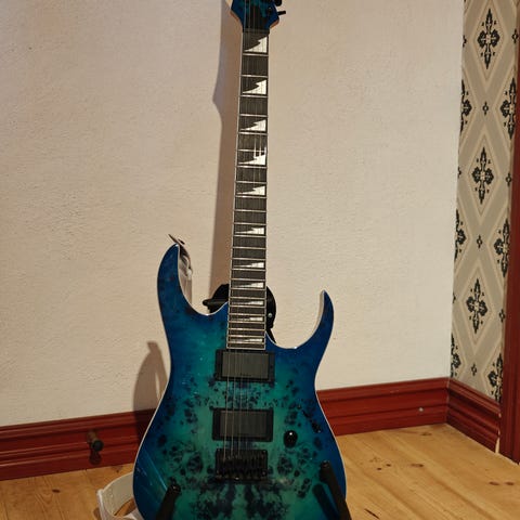 Ibanez RG927QMZ i röd finish med mönstrad topp.