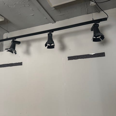 Takspotlights på skena i svart färg. Belysningen är monterad i tak och består av flera riktbara spotlights fästa på en rak skena. Passar för butiks- eller kontorsmiljö samt andra inomhusmiljöer där riktad belysning önskas,runt ca 30meter.