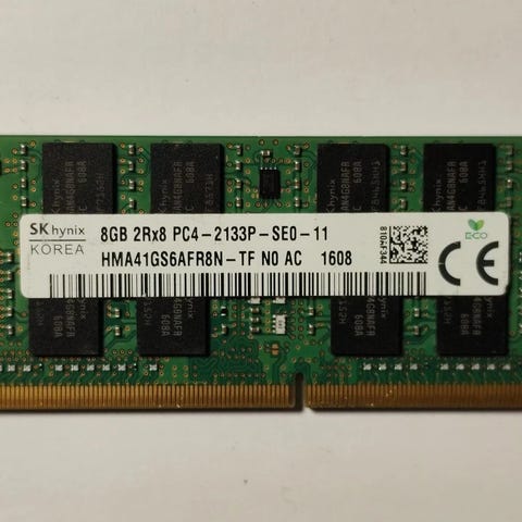 SK hynix 8GB 1Rx8 PC4-3200AA RAM-minne. DDR4-minne för datorer med SO-DIMM-plats, kapacitet 8 GB och hastighet 3200 MHz. Passar som uppgradering eller ersättning av befintligt arbetsminne i kompatibla system.