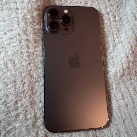 Säljer en iPhone 13 Pro Max med 256 gb lagring i blå färg.