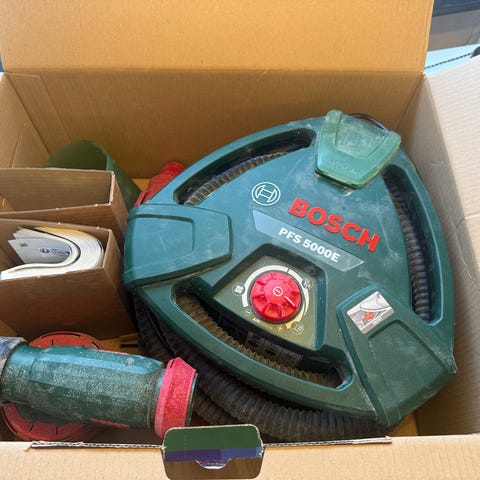 Bosch PFS105E, justerbar komplett färgspruta, för både väggar och snickerier, täcker stora ytor snabbt. Nypris ca 3000kr. Väldigt lite använd.