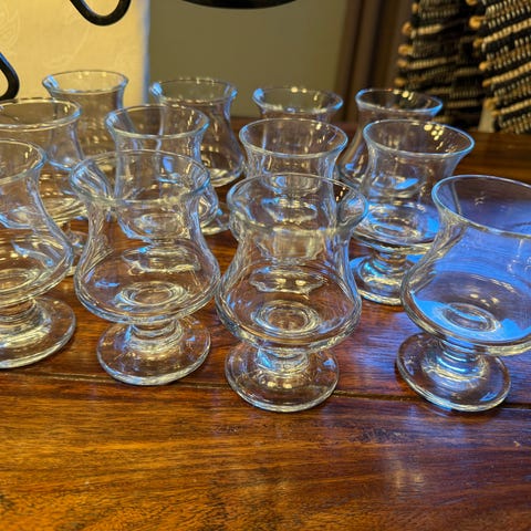 Holmegaard glas i transparent glas. Passar exempelvis som snapsglas eller likörglas vid servering av dryck. Klassisk form med fot och lätt utsvängd kant upptill. Säljs som set enligt bild.