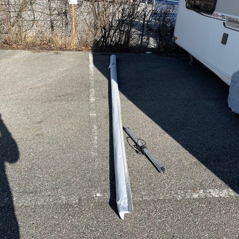 Monteras på husbil, undertill med fästen som skruvas i husbilens ram/balkar. (fästen igår ej, funkar med 4 kants rör eller köp nya fästen)