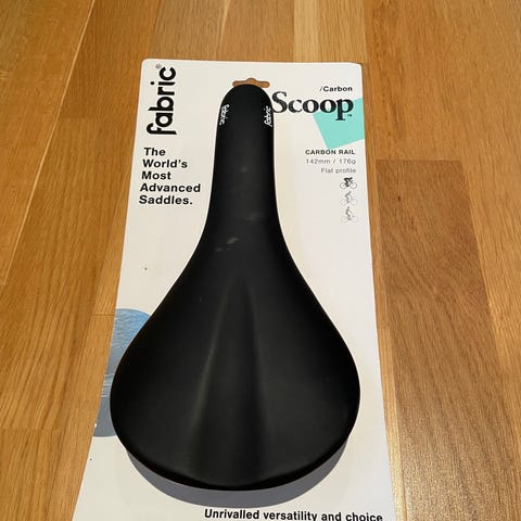 Fabric cykelsadel i vit färg med svart undersida. Sadel med smal, sportig form och räls i metall. Passar till de flesta standardcyklar med kompatibelt fäste för sadelräls. Lämplig för landsvägs- eller pendelcykling beroende på inställning och cykeltyp.