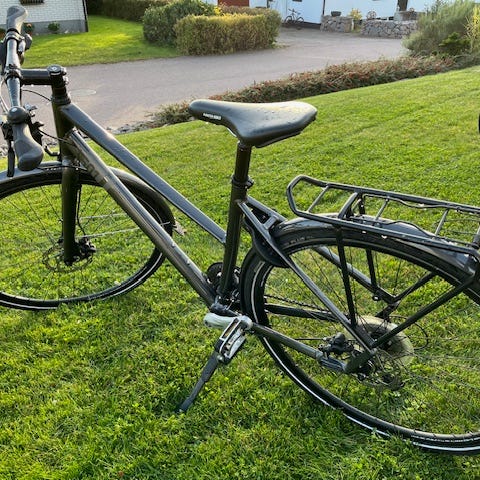 Inköpt 2020, servad årligen. Förra året byte av kassett och kedja och cyklad på ett par gånger efter det. Då jag bytte jobb våren 2024 har cykeln i stort sett blivit stående sedan dess. Senaste två åren har cykeln stått inomhus och dessförinnan i ett regnskyddat skjul.