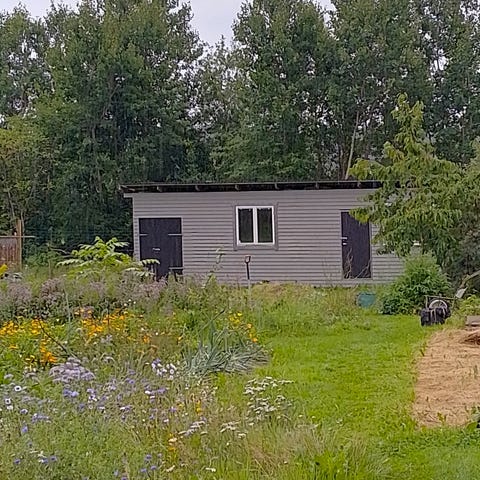 Bodar i blå färg med fönster. 8,45*2,90 24kvm.