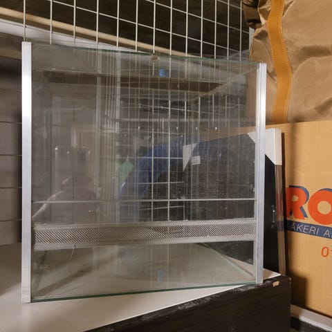 Säljer ett fint exoterra terrarium med måtten 60 längd 45 djup och 32 hög. Fint skick inga sprickor, det följer även med bakgrund. Säljer enbart terrariet. Bvsa