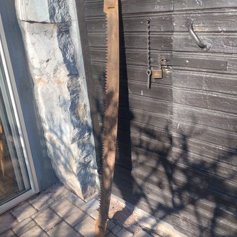 Antik tvåmanssåg / timmersåg 1900-tal metall träskaft