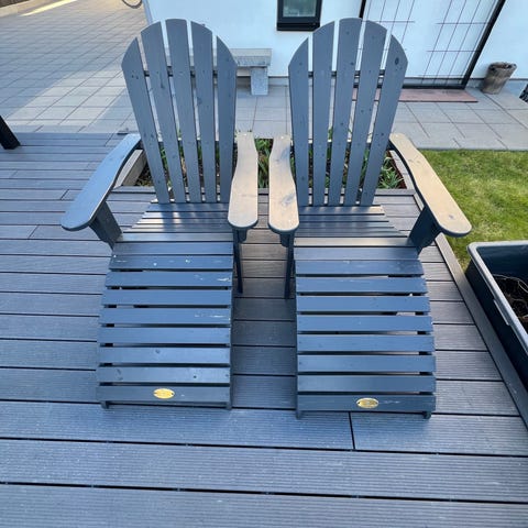 Stolarna har hög rygg med ribbor och integrerade armstöd.