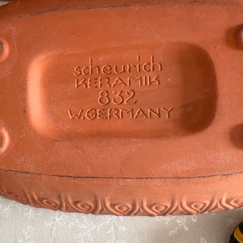 Fondueset gul, gjutjärnsgryta och rostfri brännare. Märke Anders Petter. 6 st founduegafflar med markerade färger. Inte uppackad från kartongen.