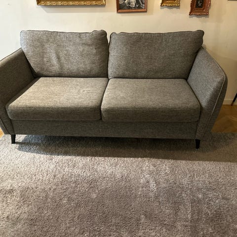 Modern brun 2 sits Mio soffa med smala ben och raka linjer. Finns att hämta i Örebro