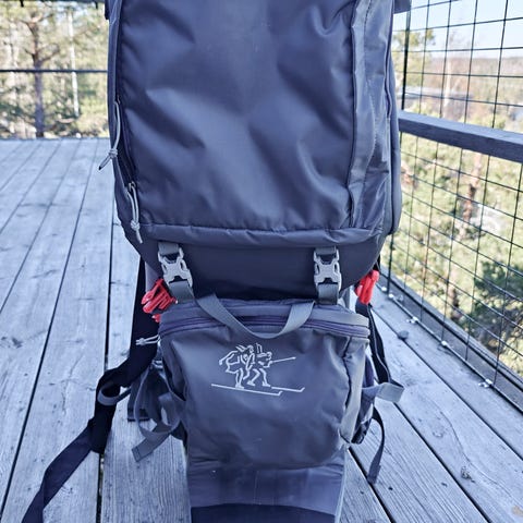 En stor avtagbar ficka medföljer och kan även användas som separat dagsäck. Det finns också en mindre ficka med dragkedja samt nätficka för till exempel vattenflaska.