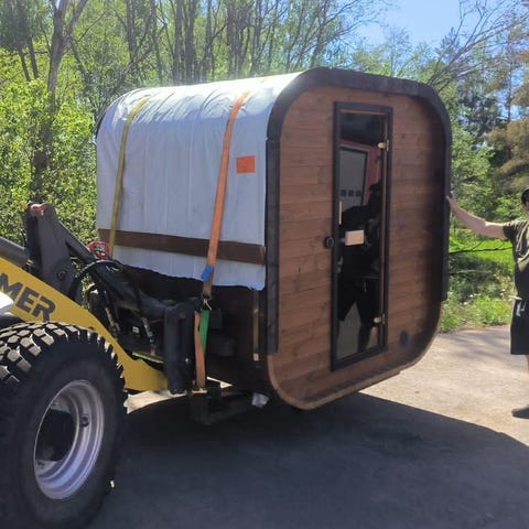 Kamin Cozy OG 18 Med 200 kg sten Vattenvärmare Narvi Kota 15 Svart 22 liter Skick Använd - i använt skick Övrig information. Traktor ögla! Bredd (på bredaste takutsticket): 2 560 mm Bredd (på golvnivå): 2 300 mm Höjd, exklusive skorsten:3 300 mm Från mark till nock med stödben nere när allt står rakt 4 750 mm lång byggnad. Byggd av Bastumajoren