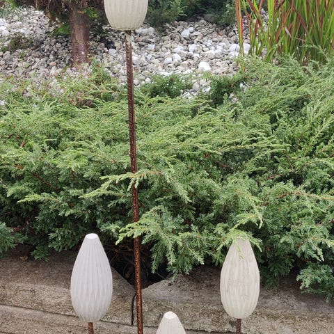 15 cm breda. Är ett armeringsjärn under stick ner i jorden.