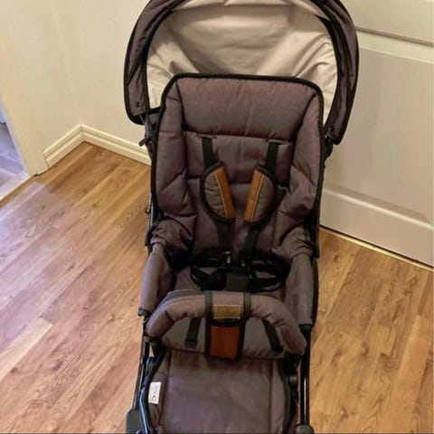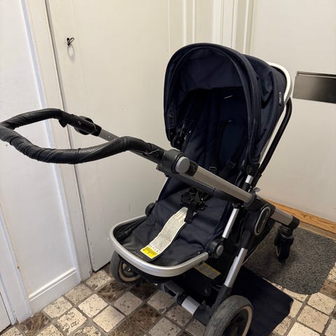 Skicket: vagnen är välanvänd men fortfarande i bra skick. På fotstödet har tyget lagats med lagningslappar, se foto.