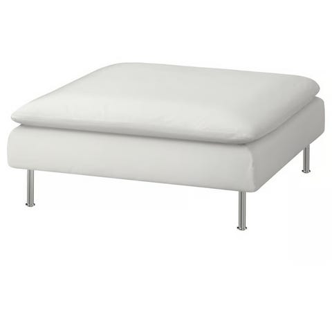 Fint begagnat skick. Inga skavanker. Beige fotpall i ikeas söderhamnserie. Katt och hund finns i hemmet, fotpallen har alltid haft pläd över som skydd. Tvättbar klädsel.
