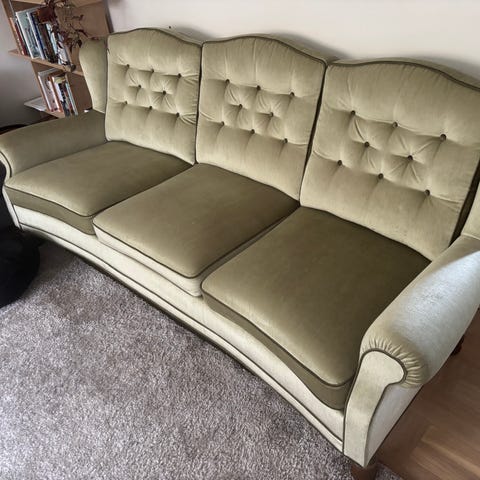 En mycket fin klassisk Howardsoffa från Englesson, med tyg för armstöd som alltid varit på, därav i mycket bra skick.