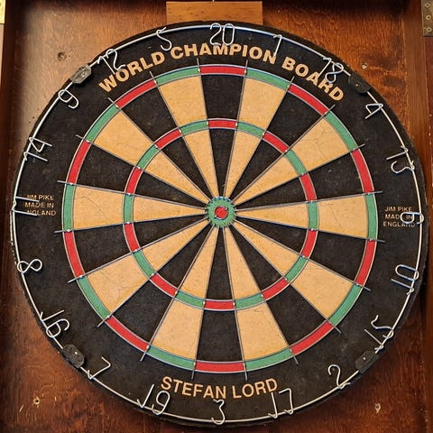 Winmau elektronisk darttavla i svart med digital display längst ned. Tavlan har numrerade fält 1–20, bullseye i mitten samt färgade segment i beige, rött, grönt och svart. Avsedd för spel med soft-tip pilar och kan användas inomhus i hemmet eller i fritidsrum. Drivs med elektronik för poängräkning via den inbyggda displayen.