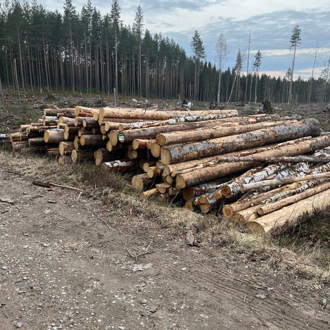 Vedstockar 3 m – ca 5–6 m³ – redo att kapa/klyva