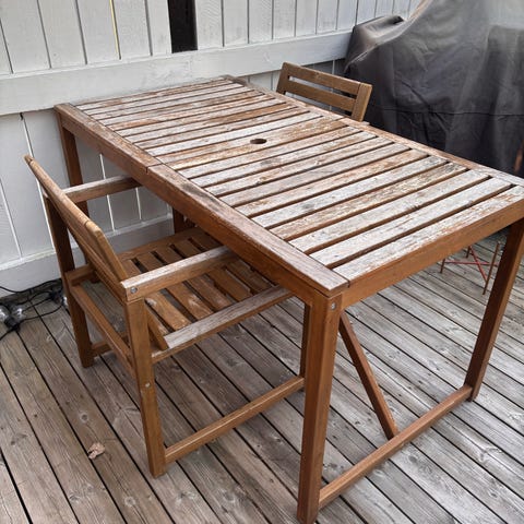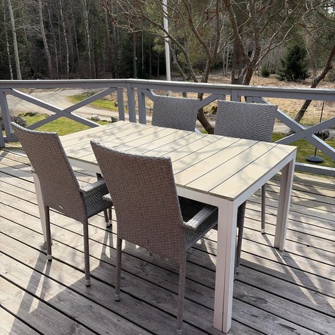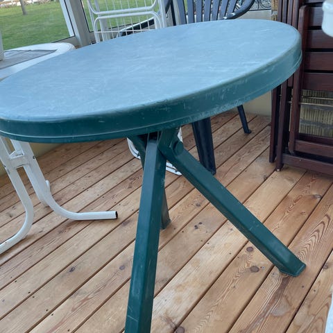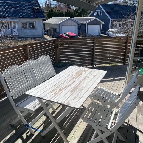 Hopfällbart bord/balkongbord i vitmålad trä från IKEA.