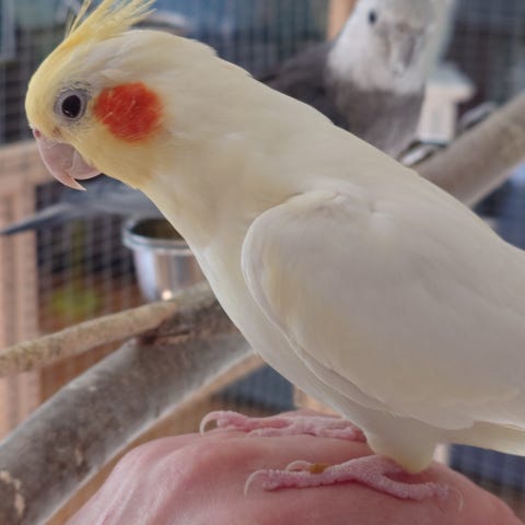 Säljer en vit albinohane ca 3 år, voljärfågel.