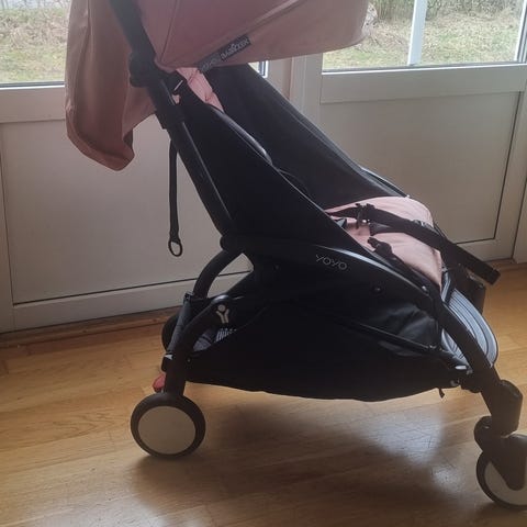 Resevagn från Yoyo BabyZen i röd och svart färg. Vagnen har sittdel med sele, sufflett med tittfönster och varukorg under sitsen. Passar som smidig vagn för vardagsbruk och resor. Går att ta med som handbagage på flyg. Enkel att fälla ihop.