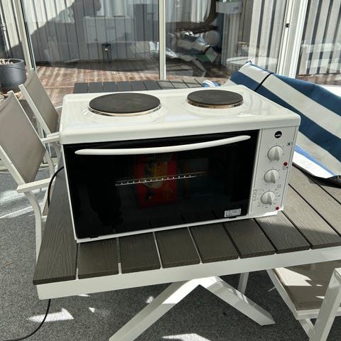 Två kokplattor samt inbyggd ugn. Perfekt för mindre kök, fritidshus eller som extra spis med ugn. Ugn från 50 till 250°C samt grillfunktion.