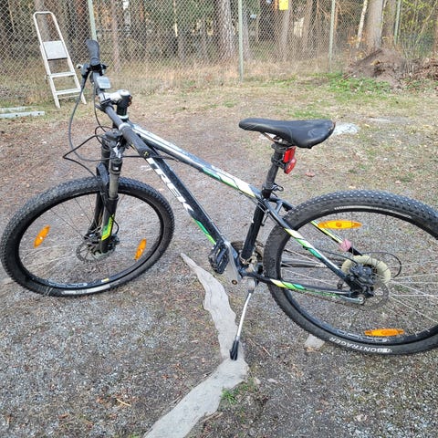 Klassisk MTB, bromsar, växlar och fjädrar perfekt. Kedjan lagd permanent på mittersta drevet bak, därför 3 växlar.