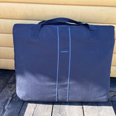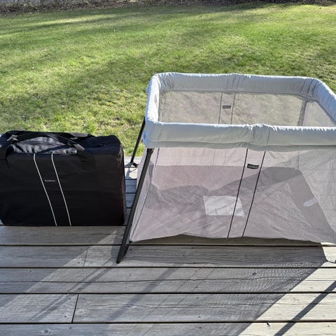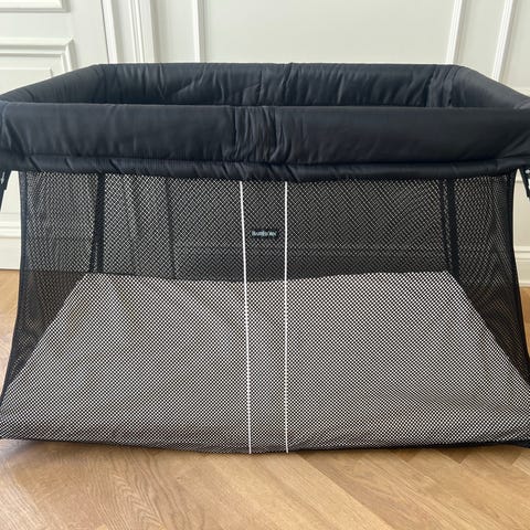Vee Bee (Australiens motsvarighet till BabyBjörn) resesäng i svart tyg med lätt aluminiumstomme. Sängen har nätpaneler på sidorna som ger god insyn och luftcirkulation. Medföljande madrass är något vadderad och anpassad till sängens mått. Resesängen är enkelt hopfällbar genom att man trycker in två knappar på vardera sida längst upp på benen. Sängen kan förvaras i medföljande fodral med handtag för enkel transport och förvaring. Passar som extrasäng eller sovplats för barn vid resor och övernattningar.
