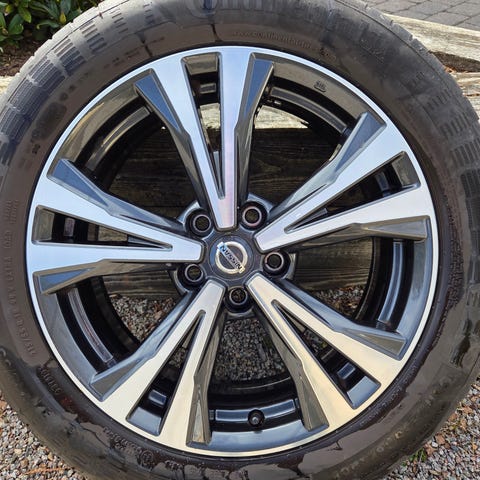 Slitna däck rullar en säsong till. Fälgarna fint skick