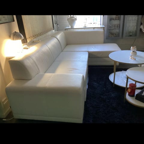 Äkta skinn U-soffa/modulsoffa säljes. Står förvarad i garage därför ej fullt monterad på bild. Behöver rengöras men är i bra skick i övrigt. Perfekt för den som vill ha en stor kvalitetssoffa till bra pris.