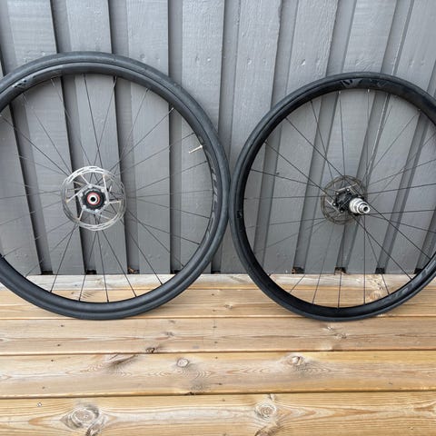 Bakhjul från en Merida Silex (byggt av baknav och framfälg). Passar till gravel, racer eller hybrid. Då fälgarna är lite i smalaste laget för gravel funkar inte alla däck som är bredare än 32mm. Dock lite mjukare som det Maxxis Rambler 38mm som följer med. Vinterdäck på 35mm funkar sämre.
